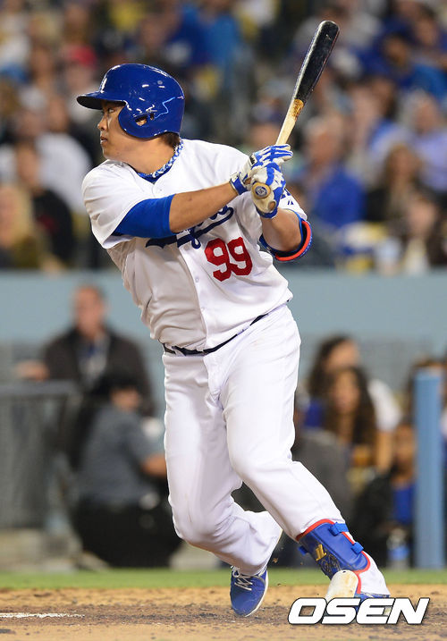 13일 오전(이하 한국시간) 미국 캘리포니아주 로스앤젤레스 다저스타디움에서 LA 다저스와 애리조나 다이아몬드백스의 경기가 열렸다. 5회말 다저스 공격 2사 3루 상황 다저스 류현진이 1타점 우전 3루타를 날리고 있다.