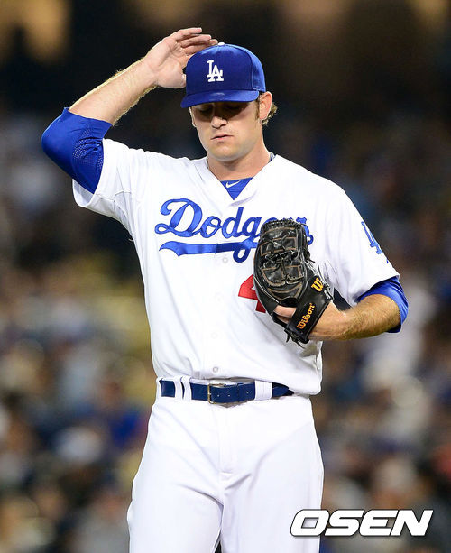 13일 오전(이하 한국시간) 미국 캘리포니아주 로스앤젤레스 다저스타디움에서 LA 다저스와 애리조나 다이아몬드백스의 경기가 열렸다. 7회초 2사 1,2루에서 다저스 위드로가 애리조나 몬테로에 동점 적시타를 허용하고 아쉬워하고 있다.