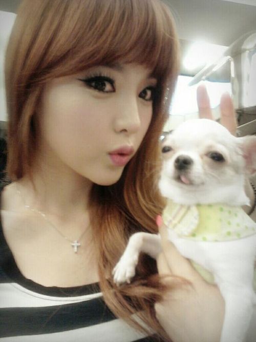 가수 홍진영이 강아지를 품에 안고 깜직한 셀카를 찍어 올렸다.