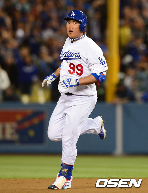 13일 오전(이하 한국시간) 미국 캘리포니아주 로스앤젤레스 다저스타디움에서 LA 다저스와 애리조나 다이아몬드백스의 경기가 열렸다. 5회말 다저스 공격 2사 3루 상황 다저스 류현진이 1타점 우전 3루타를 날리고 그라운드를 돌고 있다.