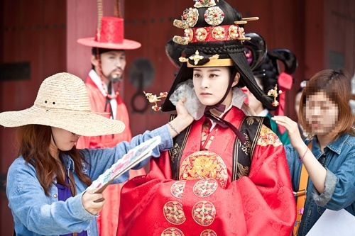 김태희는 중전 즉위식 촬영 당시 30도를 넘나드는 더위 때문에 힘들어했지만 스태프들의 얼음마사지 덕분에 무사히 촬영을 마쳤다는 후문이다.