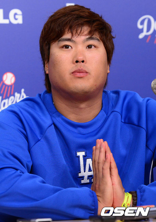 13일 오전(이하 한국시간) 미국 캘리포니아주 로스앤젤레스 다저스타디움에서 열린 LA 다저스와 애리조나 다이아몬드백스의 경기 종료 후 류현진이 취재진들과 인터뷰를 갖고 있다.