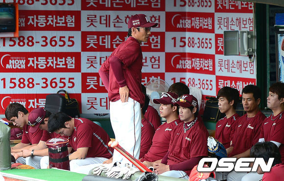 12일 부산 사직구장에서 열리는 '2013 한국야쿠르트 세븐 프로야구' 롯데 자이언츠와 넥센 히어로즈의 경기전 넥센 염경엽 감독이 선수들과 이야기를 나누고 있다.