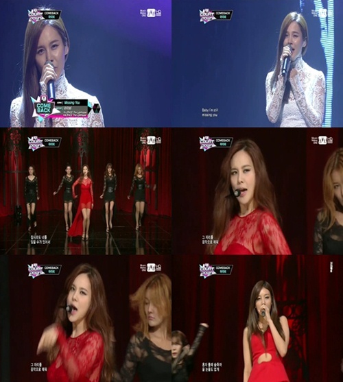 이날 컴백무대에서 아이비는 흰색 시스루 롱드레스를 입고 등장해 '미씽 유'를 열창하며 뛰어난 가창력을 뽐냈다. 애절한 가사와 아이비의 목소리가 조화를 이루며 애틋한 감성이 잘 전달됐다.