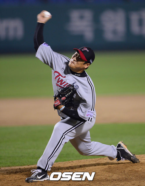 13일 오후 대전구장에서 열린 '2013 한국야쿠르트 세븐 프로야구' 한화 이글스와 LG 트윈스의 경기, 6회말 LG 정현욱 투수가 역투하고 있다