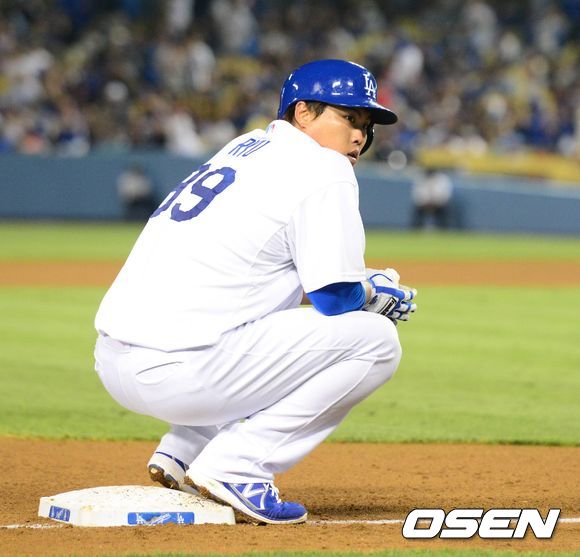 5회말 1타점 3루타를 친 류현진 베이스에 앉아 숨을 고르고 있다./ baik@osen.co.kr
