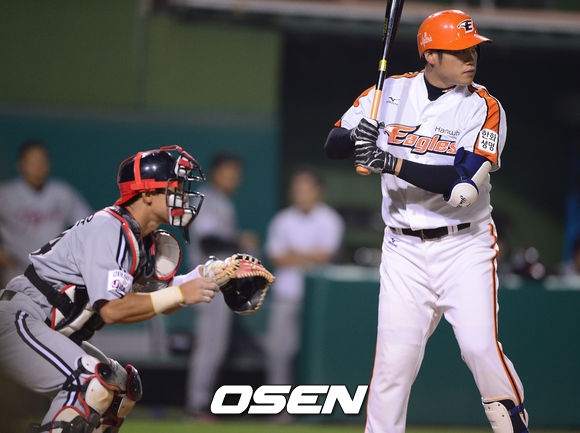 13일 오후 대전구장에서 열린 '2013 한국야쿠르트 세븐 프로야구' 한화 이글스와 LG 트윈스의 경기, 6회말 2사 2,3루 교체된 한화 최진행이 고의사구를 당하고 있다