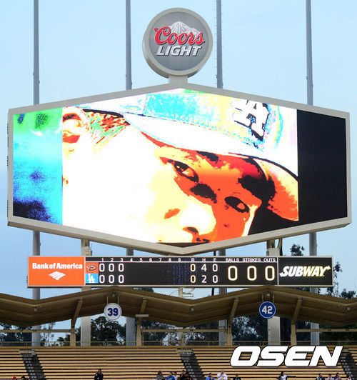 LA 다저스와 애리조나 다이아몬드백스의 경기가 열리 지난 13일(이하한국시간) 미국 캘리포니아주 로스앤젤레스 다저스타디움. 4회초를 마친 뒤 다저스 구단에서는 전광판을 통해 '오늘의 역사'를 영상으로 전했다. 그 순간 다저스타디움 전광판에는 '빅초이' 최희섭(34·KIA)이 등장했다.