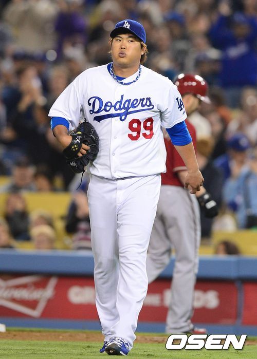 6회초 1사 만루에서 삼진과 내야 뜬공으로 위기를 넘긴 류현진이 한숨을 쉬고 있다./ baik@osen.co.kr