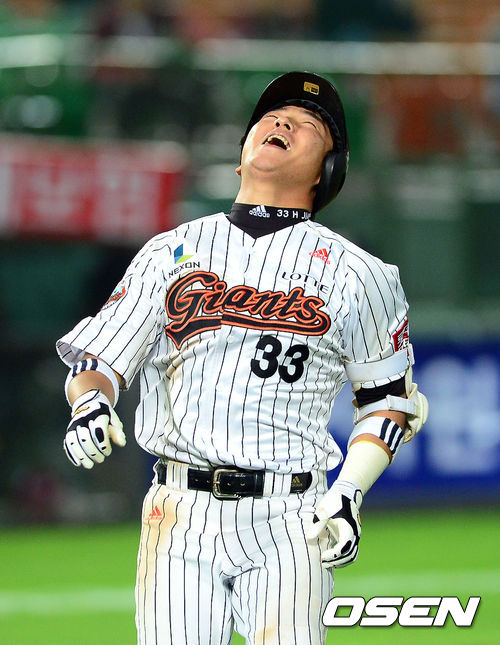 12일 부산 사직구장에서 열린 '2013 한국야쿠르트 세븐 프로야구' 롯데 자이언츠와 넥센 히어로즈의 경기, 9회말 2사 2루 롯데 정훈이 자신이 타격한 공이 파울라인을 넘어가자 아쉬워하고 있다.