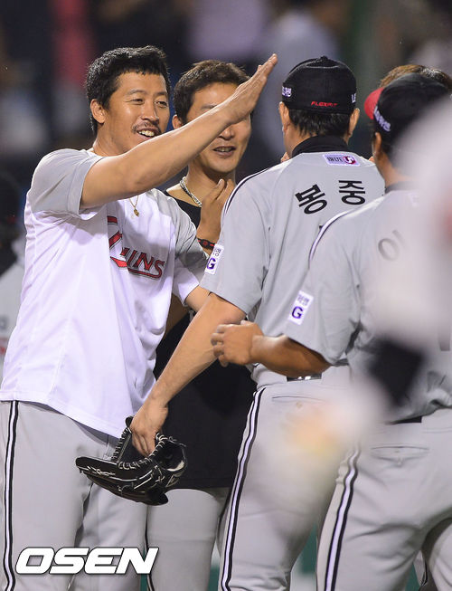 경기종료 후 LG 이병규가 봉중근 마무리 투수와 승리의 기쁨을 나누고 있다./ soul1014@osen.co.kr