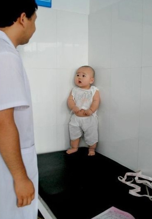 사진 속 아기는 의사 선생님을 피해 구석까지 몸을 피하고 있다. 두려운 눈빛을 보내고 있는 아기의 모습은 안타까우면서도 귀여움을 자아낸다.