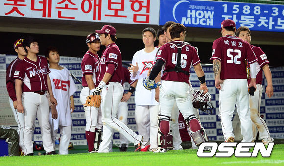 11회말 2사 1,2루 롯데 손아섭에게 끝내기 안타를 허용한 넥센 선수들이 아쉬운 표정을 지으며 그라운드를 빠져나가고 있다. / youngrae@osen.co.kr