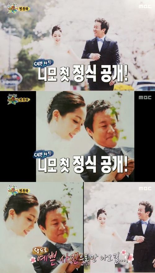 정준하는 13일 오후 방송된 MBC 예능프로그램 ‘황금어장-무릎팍도사’에서 온라인에서 공개된 아내의 사진이 마음에 들지 않는다며 니모의 모습이 담긴 웨딩 사진을 공개했다.