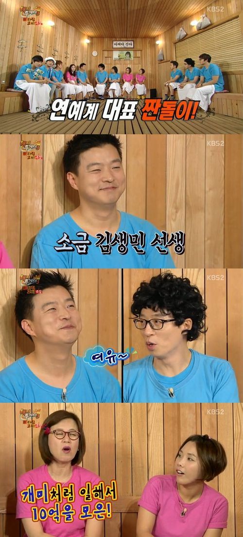 유재석은 김생민을 “연예계의 대표 자린고비, 소금이다”고 소개했다. 이에 김생민이 아무렇지 않다는 표정을 짓자 유재석은 “소금, 이런 얘기를 해도 표정 변화 없다. 인정한다는 얘기다”라고 말해 웃음을 자아냈다.