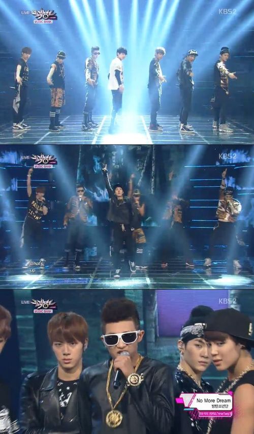 방탄소년단은 14일 오후 6시 10분 방송된 KBS 2TV '뮤직뱅크'에 출연해 곡 '위 아 부렛프루프 PT2(we are Bulletproof PT2)'와 타이틀 곡 '노 모어 드림(NO MORE DREAM)'을 열창했다.
