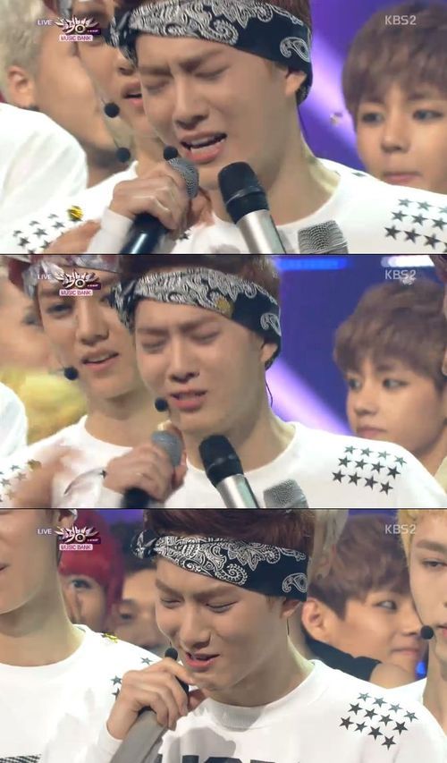 그룹 엑소가 데뷔 후 첫 1위 트로피를 거머쥐는 쾌거를 거두고 오열했다.