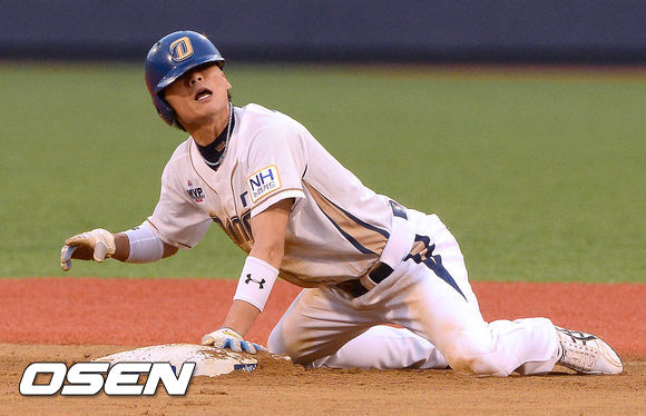 14일 오후 경남 창원시 마산구장에서 열린 2013 한국야쿠르트 세븐프로야구 NC 다이노스와 삼성 라이온즈의 경기 1회말 무사 1루 NC 박정준의 타석때 1루 주자 김종호가 도루실패해 아쉬워하고 있다