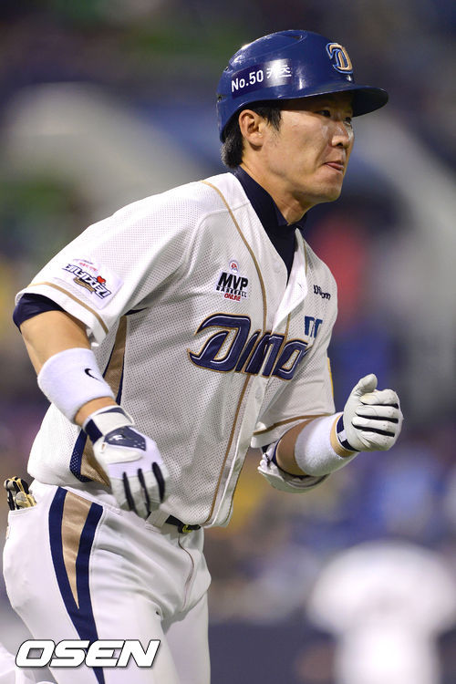 14일 오후 경남 창원시 마산구장에서 열린 2013 한국야쿠르트 세븐프로야구 NC 다이노스와 삼성 라이온즈의 경기 6회말 1사 NC 지석훈이 동점 솔로홈런을 날리고 베이스를 돌고 있다