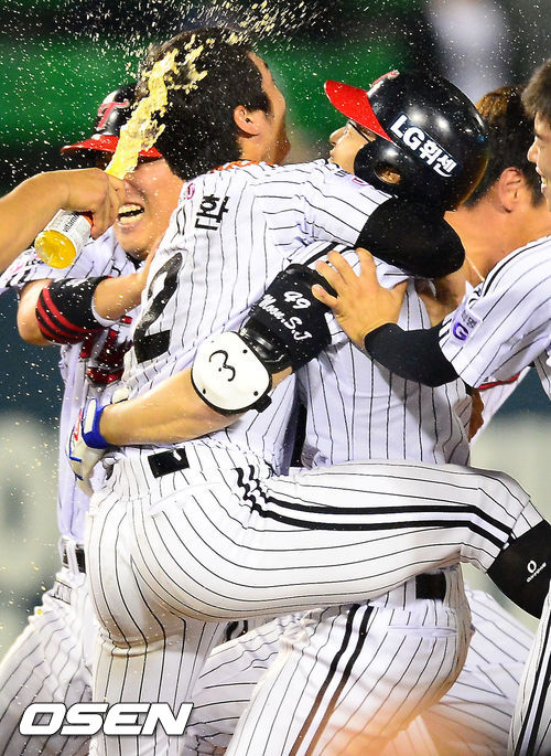 LG는 정규이닝 마지막인 9회말 2사후 이병규와 이진영이 연속으로 중전안타를 쳤고 문선재가 승부를 결정 짓는 쐐기타를 날려 극적으로 승리했다.  / rumi@osen.co.kr