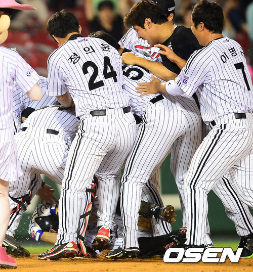 LG는 정규이닝 마지막인 9회말 2사후 이병규와 이진영이 연속으로 중전안타를 쳤고 문선재가 승부를 결정 짓는 쐐기타를 날려 극적으로 승리했다. / rumi@osen.co.kr