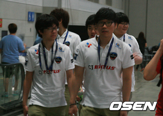 15일 오후 경기도 고양시 킨텍스 제2전시장에서 열리는 '롤챔스 스프링 2013' 결승전을 앞두고 양팀 선수들과 방송 관계자들이 리허설을 진행하고 있다. 4강전서 CJ 블레이즈에 0-3으로 패한 CJ 프로스트가 형제팀 블레이즈 응원을 위해 현장을 찾았다.