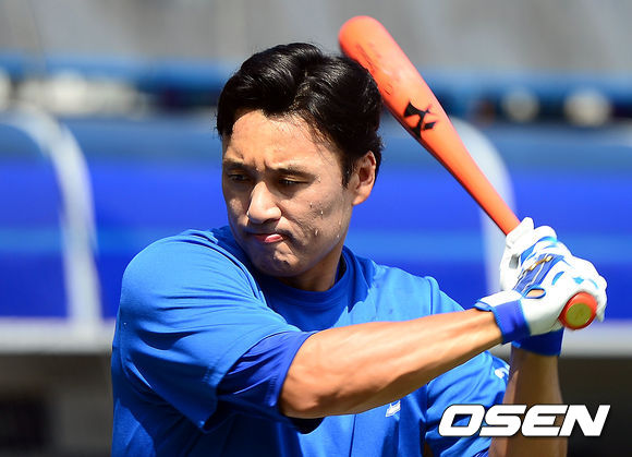15일 오후 경남 창원시 마산구장에서 열리는 013 한국야쿠르트 세븐프로야구 NC 다이노스와 삼성 라이온즈의 경기전 삼성 이승엽이 타격 훈련을 하고 있다.