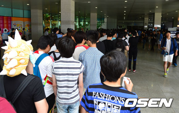 15일 오후 경기도 고양시 킨텍스 제2전시장에서 열리는 '롤챔스 스프링 2013' 결승전을 앞두고 긴 줄을 늘어선 관람객들 입장을 기다리고 있다.