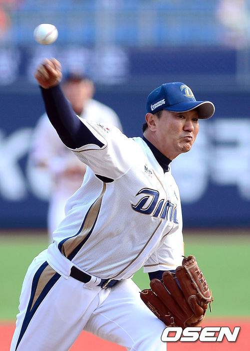 15일 오후 경남 창원시 마산구장에서 열린 2013 한국야쿠르트 세븐프로야구 NC 다이노스와 삼성 라이온즈의 경기, 1회초 NC 손민한이 역투하고 있다.