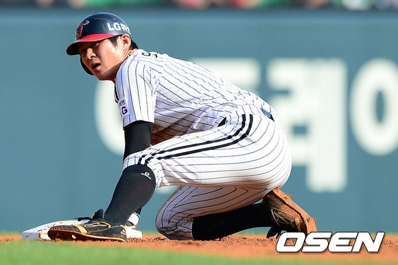 15일 오후 서울 잠실야구장에서 열린 '2013 한국야쿠르트 세븐 프로야구' LG 트윈스와 넥센 히어로즈의 경기, 1회초 2사 1루에서 LG 오지환이 정의윤 타석에 2루 도루를 시도하다 아웃당하며 아쉬워하고 있다.