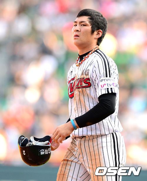 15일 오후 서울 잠실야구장에서 열린 '2013 한국야쿠르트 세븐 프로야구' LG 트윈스와 넥센 히어로즈의 경기, 3회말 1사 1,2루에서 LG 오지환이 병살로 물러나며 아쉬워하고 있다.