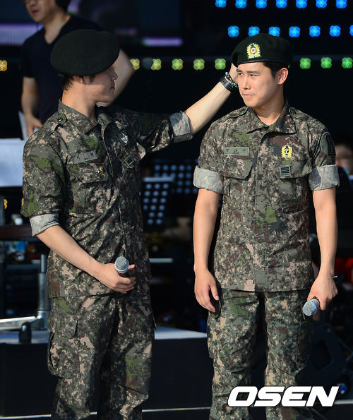 15일 오후 대구 코오롱야외음악당에서 열린 제7회 대구국제뮤지컬페스티벌(DIMF, 이하 딤프) 전야제 'K-뮤지컬 콘서트' 리허설무대에서 이현과 정태우가 이야기를 나누고 있다. 정태우는 이틀전 군전역했지만 이날 무대를 꾸미기 위해 참석했다.