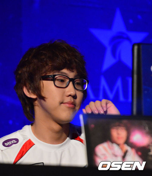 '롤챔스 스프링 2013' 결승전이 15일 오후 경기도 고양시 킨텍스 제2전시장에서 열렸다. 2연승을 거둔 MVP 오존 '임프' 구승빈이 미소 짓고 있다.
