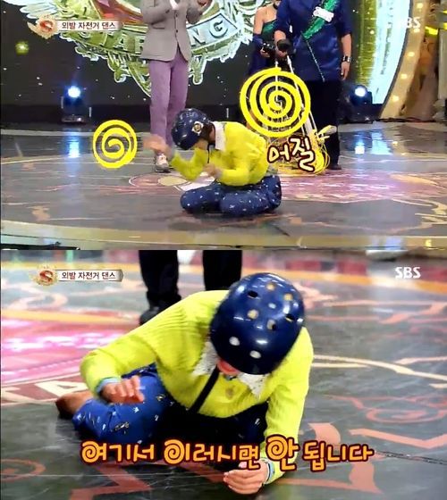 고우리는 15일 방송된 SBS 예능프로그램 '놀라운 대회 스타킹'에서 외발자전거 댄스 동작 중 신데렐라 스핀 체험에 자원했다.