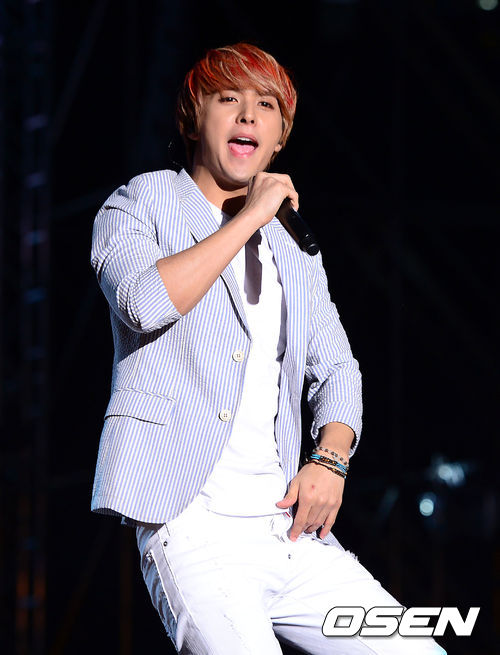 15일 오후 서울 일원동 마루공원에서 열린 그룹 비스트의 '뷰티파티' 게릴라 콘서트에서 그룹 비스트 손동운이 화려한 공연을 펼치고 있다.