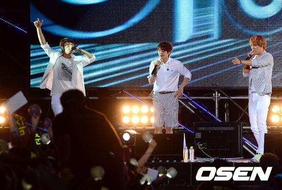 15일 오후 서울 일원동 마루공원에서 열린 그룹 비스트의 '뷰티파티' 게릴라 콘서트에서 그룹 비스트가 화려한 공연을 펼치고 있다.