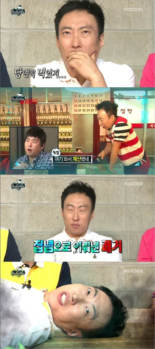 박명수는 갑자기 배가 아프다고 화장실로 뛰어갔다. 다른 멤버들이 정준하의 예측에 걸려들지 않기 위해 머리를 굴리고, 맛있는 음식에 한눈을 파는 사이 박명수는 중국요리집으로 냅다 뛰었다. 바로 자신의 카드로 결제한 것. 결국 박명수는 사비로 멤버들에게 음식을 먹이는데 성공, 이날의 우승자가 됐다. 박명수의 집념이 성공한 셈이다.