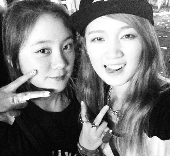 걸그룹 미쓰에이의 지아가 원더걸스의 혜림과 다정하게 사진을 찍어 눈길을 끌고 있다.
