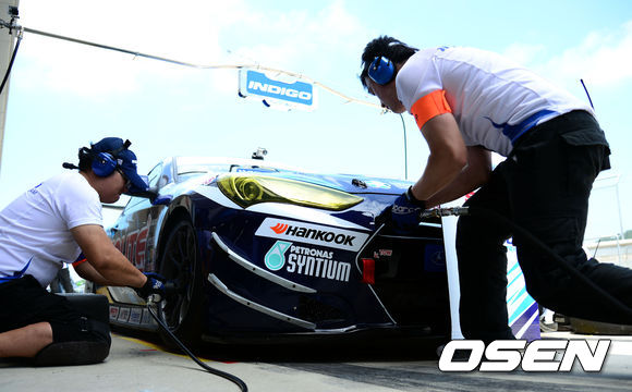 16일 전라남도 영암 코리아인터내셔널서킷에서 진행된 '2013 코리아 스피드 페스티벌(이하 KSF)' 3라운드에서 쏠라이트인디고 레이싱팀의 미케닉팀이 택시타임을 마치고 돌아온 최명길의 차량을 점검하고 있다.