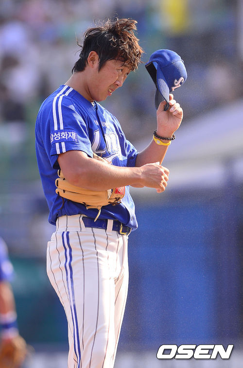 16일 오후 경남 창원시 마산구장에서 열린 2013 한국야쿠르트 세븐프로야구 NC 다이노스와 삼성 라이온즈의 경기,1회말 4실점 허용한 삼성 배영수 선발투수가 아쉬워하고 있다.