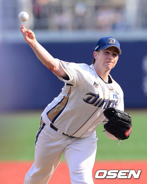 16일 오후 경남 창원시 마산구장에서 열린 2013 한국야쿠르트 세븐프로야구 NC 다이노스와 삼성 라이온즈의 경기,1회초 NC 선발투수 에렉이 역투하고 있다