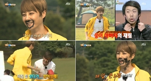 이 모습에 멤버들은 신혜성이 과거 코미디 프로그램 '웃음을 찾는 사람들'에서 웅이 아버지로 활약했던 양세찬과 똑같다며 웃음을 터트렸다. 이민우 역시 신혜성의 모습을 보고 웃음이 터지면서 결국 게임에서 패했다.