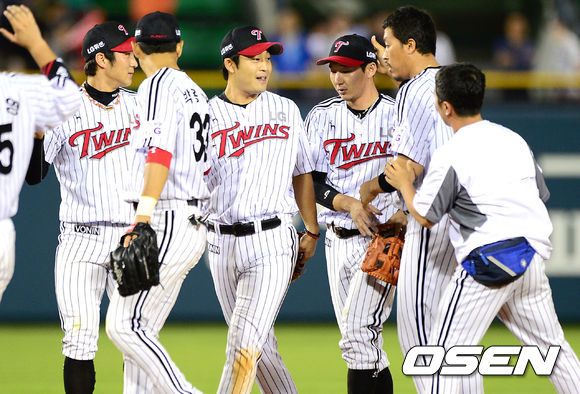 경기 종료 후 LG 선수들이 승리의 기쁨을 나누고 있다. /sunday@osen.co.kr