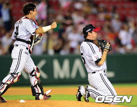 경기 종료 후 LG 봉중근이 승리의 환호를 하고 있다. /sunday@osen.co.kr