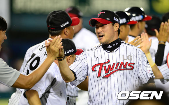 경기 종료 후 LG 봉중근이 동료들과 승리의 기쁨을 나누고 있다. /sunday@osen.co.kr