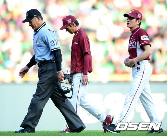 13일 잠실 LG-넥센전에서는 0-0로 팽팽하던 5회말 2사 만루에서 3루수 김민성이 잡아 2루수 서건창에게 공을 던지면서 큰 차이로 1루주자를 아웃시켰으나 2루심이 세잎 판정을 내리면서 이닝 종료 대신 LG가 8점을 내는 오심이 있었다.