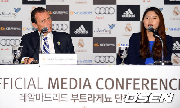 17일 오후 서울 소공동 롯데호텔 그랜드볼룸에서 레알 마드리드 부트라게뇨 단장이 취재진의 질문을 듣고 있다.