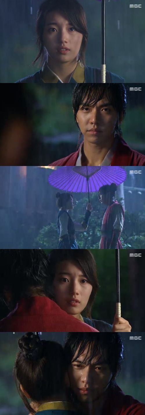 ‘구가의 서’의 이승기와 수지가 애절한 빗속 포옹을 나눴다. 이승기는 어머니 윤세아를 떠나보낸 슬픔에, 수지는 이들에게 예정된 이별에 슬픈 표정을 숨길 수 없었다.
