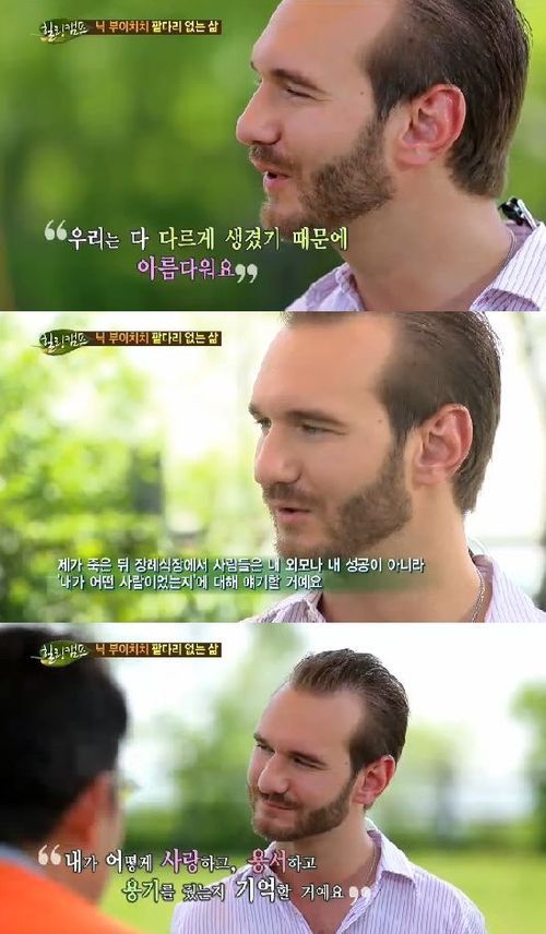 닉 부이치치는 해표지증으로 팔다리 없이 태어났지만 그 누구보다 긍정적인 마인드로 전세계 사람들을 힐링하는 유명인사. 이날 방송에서도 그는 ‘보이는 것’에 대한 부질 없음에 대해 설파했다.