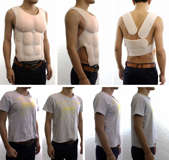 최근 여러 온라인커뮤니티에서 인기를 끌고 있는 '벗을 수 없는 몸짱'은 일본의 한 보형물 제조업체가 제작, 판매하고 있는 실리콘 재질의 보디수트다. 남성의 가슴근육과 식스팩 복근을 정밀하게 구현했기 때문에 이 보디수트를 입고 위에 티셔츠를 입는다면 탄탄한 근육질 몸매를 자랑할 수 있다.